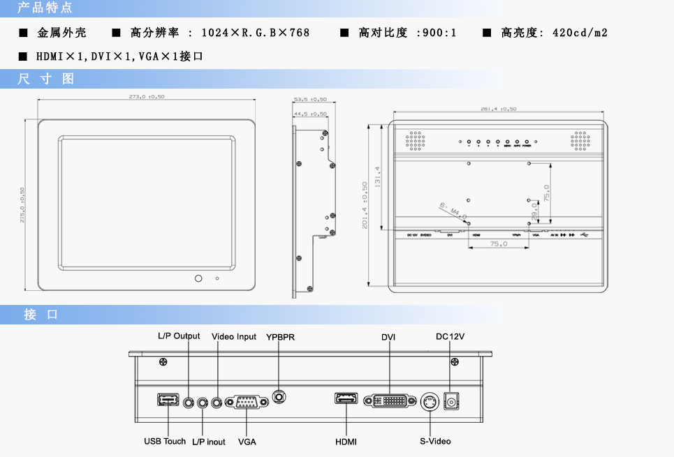 | 觸摸屏接口 | USB | ||