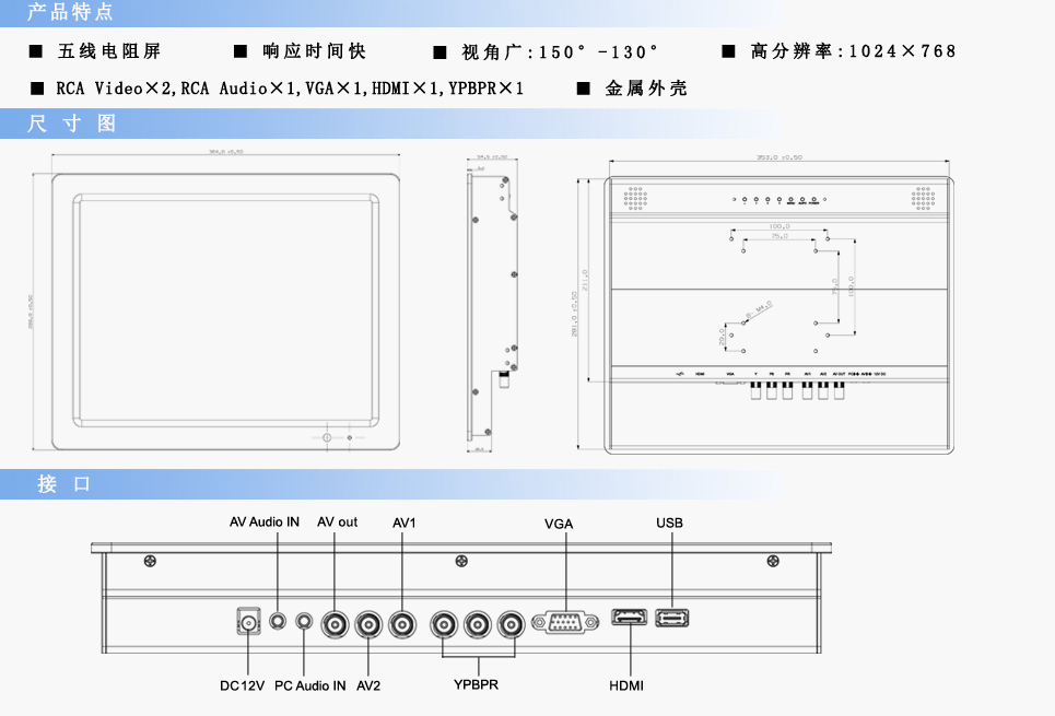 | 觸摸屏接口 | USB | ||