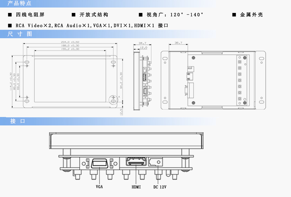 | 輸入信號 | RCA Video×2,RCA Audio×1,VGA×1,DVI×1,HDMI×1 | ||