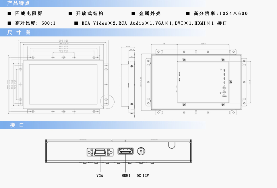 | 分 辨 率 | 1024RGB(寬)×600(高) | ||