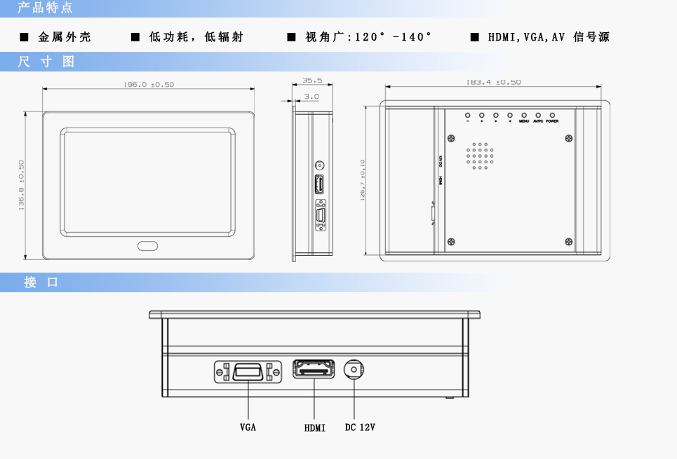 | 輸入信號 | RCA Video×2,RCA Audio×1,VGA×1,DVI×1,HDMI×1 | ||