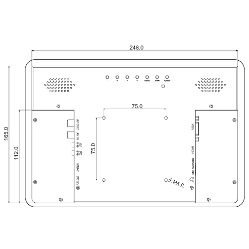 輸入信號(hào):RCA Video×1,RCA Audio×2,VGA×1,HDMI×1